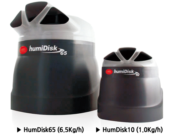 HumDisk 원심식 가습기는 모터의 고속 회전시 디스크의 원심력을 이용하여 물을 비산 시키고 내부 판에 충돌시켜 물을 공기 중에 미세 분무하는 방식입니다.